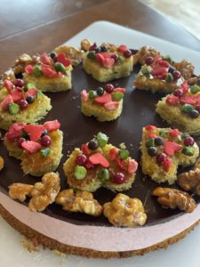 今月のお菓子は生地はオレンジピールと胡桃を入れたピスタチオのパンドジェーヌ